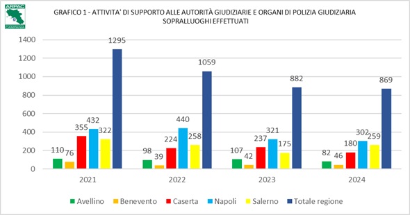 In linea generale, le attività di supporto ed assistenza tecnica che l'ARPAC fornisce alle Autorità Giudiziarie e agli Organi di Polizia, consistono sia in collaborazioni occasionali, di volta in volta richieste, sia in specifiche prestazioni espletate nella qualità di soggetto "ausiliario" su specifiche richieste.