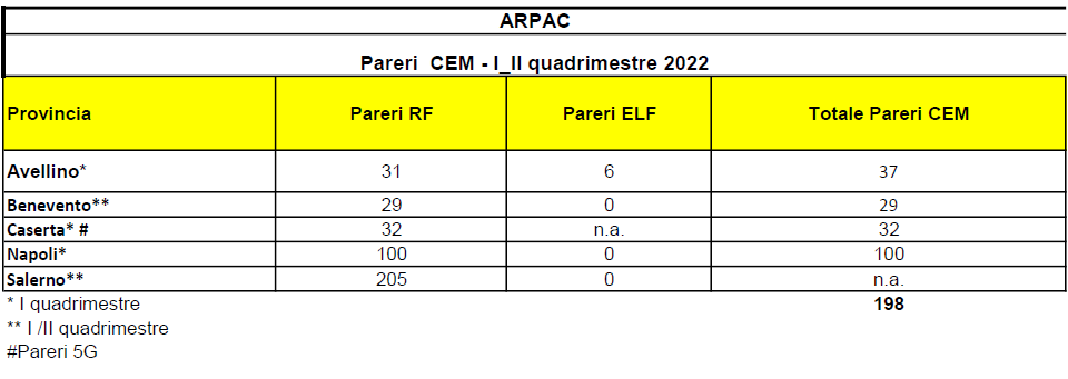 Pareri preventivi su sorgenti RF e EFL 2022 (I/II Quadrimestre 2023)