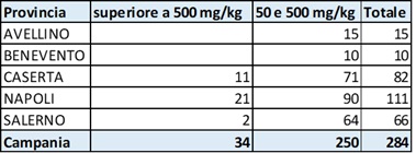 Nel 2022, in Campania sono stati prodotti 83.885 kg di rifiuti contenenti PCB, con la produzione concentrata prevalentemente nella provincia di Napoli (77.892 kg), seguita da Benevento (3.120 kg), Caserta (1.943 kg) e Salerno (930 kg). Una quota significativa della produzione è riconducibile a una ditta con sede a Pozzuoli, che ha generato 58.270 kg di rifiuti contenenti PCB, successivamente inviati nel Lazio per il trattamento.